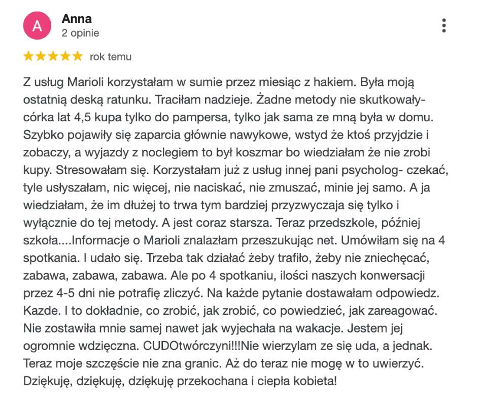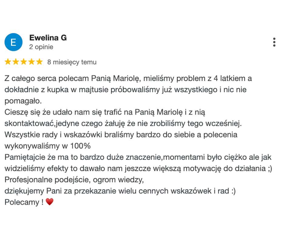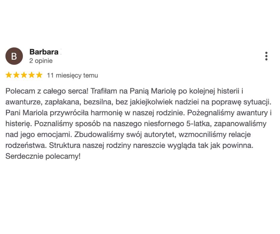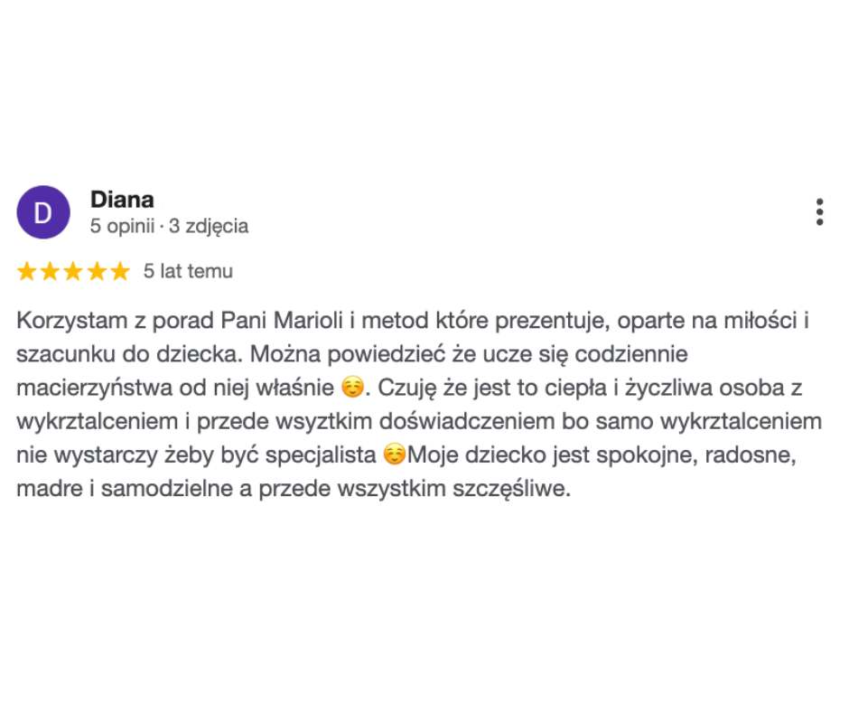 Rodzicielstwo to nieustanna nauka, a każda zmiana zaczyna się od wiedzy. Wiele osób skorzystało już z moich materiałów i konsultacji, by lepiej rozumieć swoje dzieci i z większym spokojem reagować na codzienne wyzwania. Ich doświadczenia pokazują, jak świadome podejście wpływa na relacje w rodzinie. Sprawdź, co mówią inni, i zobacz, które treści mogą wesprzeć także Ciebie.